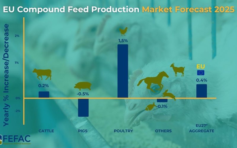 Европейская федерация производителей комбикормов (FEFAC) представила прогноз, согласно которому в 2025 году рынок комбикормов в странах Европейского союза сохранит относительную стабильность. Ожидается, что общий объем производства достигнет 147,5 млн тонн, что на 0,40% превысит показатели 2024 года. Этот незначительный рост свидетельствует об устойчивости сектора на фоне растущей неопределенности на рынках и разнонаправленных тенденций в отдельных странах. Отрасль продолжает демонстрировать жизнеспособность, несмотря на экономические, геополитические, регуляторные и экологические вызовы, а также угрозы, связанные с болезнями животных.